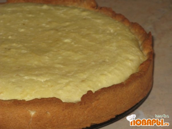 Вылепить тесто по форме, я на дно выложила 3 мелко порезанные груши и залила заливкой. Выпекать при температуре 180 градусов 35 минут. Приятного аппетита!!!