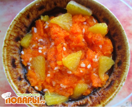 Апельсин почистить и порезать на небольшие кусочки. Когда рис будет готов, а это мин. через 15-20, можно будет добавить кусочки апельсина и посыпать корицей, все хорошенько перемешать и оставить на огне еще мин 5.