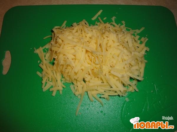 Пока наша начинка, для лодочек, тушится на плите. Натираем сыр, на крупной терки.