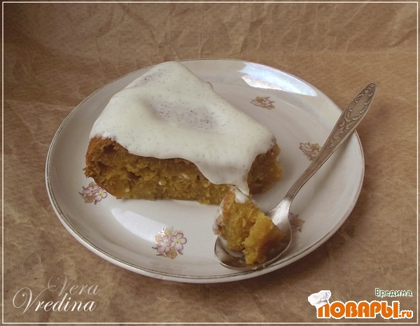 Готовый кекс можно покрыть сметаной взбитой с сахаром.