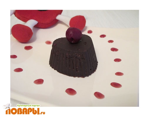 В застывшие шоколадные формочки кладем творожно-ягодную начинку. Сверху поливаем шоколадом. Отправляем в холодильник на 10 минут (оставляем немного шоколада для украшения).
