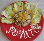 На тарелке раскладываем листья салата и сверху накладываем наш салатик.