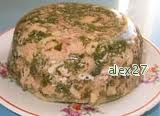 Затем добавляют тертый сыр, вино Кубанское, масло сливочное, разводят все это крепким куриным бульоном, заправляют мускатным орехом, перцем, солью, хорошо размешивают, заливают в формы и охлаждают в холодильнике.