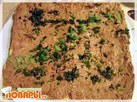 намазываем половиной печеночной массы и посыпаем измельченным укропчиком
