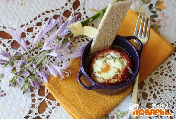 Запеченный помидор с яйцом
