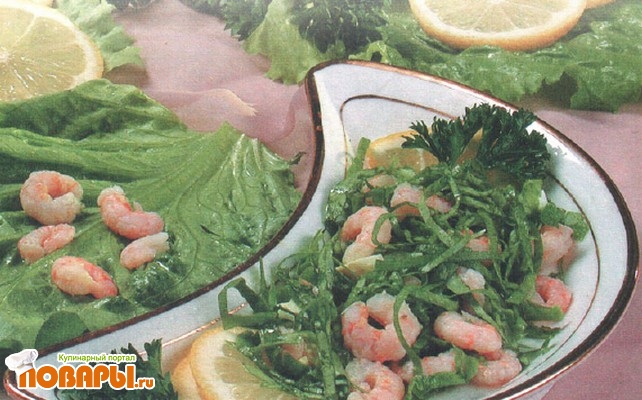 Креветки очищают и отваривают в течение 5 минут в подсоленной воде.