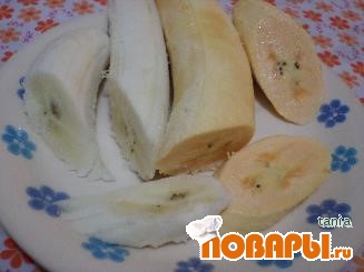 На разогретой сковородке с небольшим количеством растительного масла обжарить банановые дольки до румяного цвета с обеих сторон.