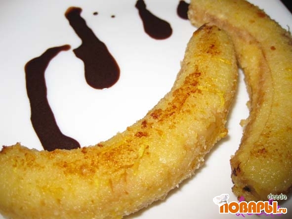 Обвалять бананы в панировке надо сразу, иначе они подсыхают и панировка плохо пристает. Если бананы все-таки залежались. поскоблите из немного ножом.