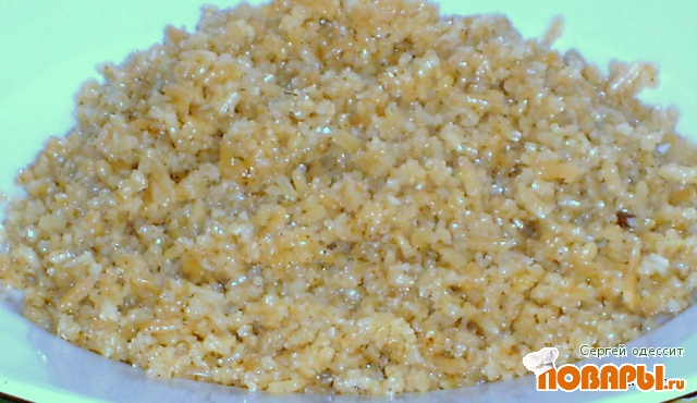Что любопытно - вначале масло не покрывает рис, когда получается необходимая степень прожарки если разровнять рис в казанке - он весь будет в масле. Почему так не знаю.