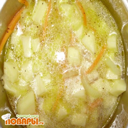 Клубни чистим и режим квадратиками-кубиками. Лук и морковь можно накрошить, а можно нашинковать (или натереть) и полукольцами нарезать.