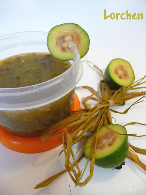 Фейхоа! Какие чудесные зеленые плоды с неповторимым землянично-ананасовым ароматом! А какие они полезные - много витамина С и самое главное - это самый главный источник органического йода, который полностью усваивается организмом. А так как у дочки проблемы с щитовидкой, приготовила вот такое варенье - "живой витамин", которое хорошо и для иммунитета.