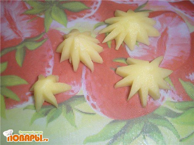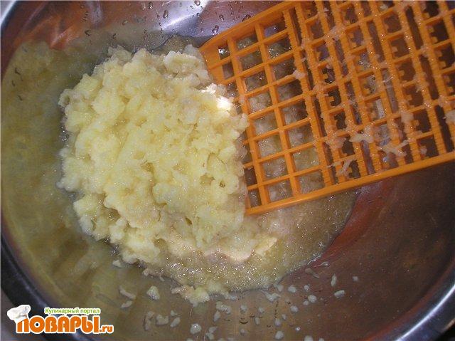 Из натёртого картофеля отжимаем крахмал и лепим клёцки. 4 большие с фаршем, 4 поменьше тоже с фаршем и ещё 4 маленькие без начинки.