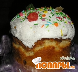 Выпекать 10 минут при 100 градусах. Далее увеличить температуру до 180 и выпекать до готовности, которую можно определить, проткнув кулич лучинкой (если она осталась сухой - кулич готов).