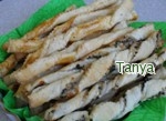 Скрутить каждую полоску 3-4 раза, разложить на противне на расстоянии 2-3 см друг от друга. Выпекать 12-15 мин. при температуре 200 гр., пока тесто не поднимется и не зарумянится.