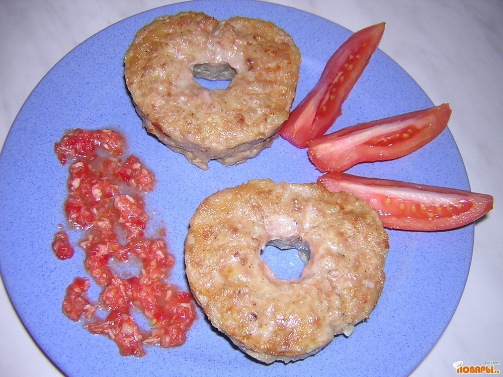 В куриный фарш (около 700 г) добавила мелкопорезаный лук, мелкопорезаного чеснока, майонез, яйцо , картошку, натертую на мелкой терке, соль и перец по вкусу. Хорошо вымесила и в силиконовые формочки. Запекала в духовке при 180 гр. до готовности.