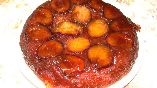 Мои впечатления: что меня ужасно смутило, так это когда я вынула пирог из духовки, на поверхности плавал то ли маргарин, то ли расстаявший сахар. Вид у паирога был просто возмутительно некрасивый. Я даже подумала, что он не пропекся. Очень расстроилась, и решила что подожду когда он остынет, а вот тогда уже... Но после того, как он остыл, все куда то пропало, карамель застыла на сливах и маргарин, видимо впитался. Вкус у пирога необычный, кислинка от слив пропала, присутствует вкус карамели. Тесто нежное, и долго не засыхает.