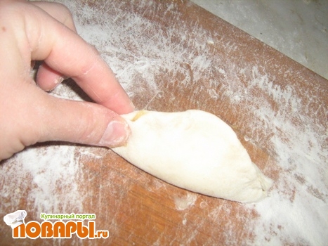Можно и швом вверх, тогда, как бы, гребешок на пирожке получается. Выпекать в духовке 15-20 минут при 200-220 град (на двоечке). Можно обжарить пирожки в жире.
