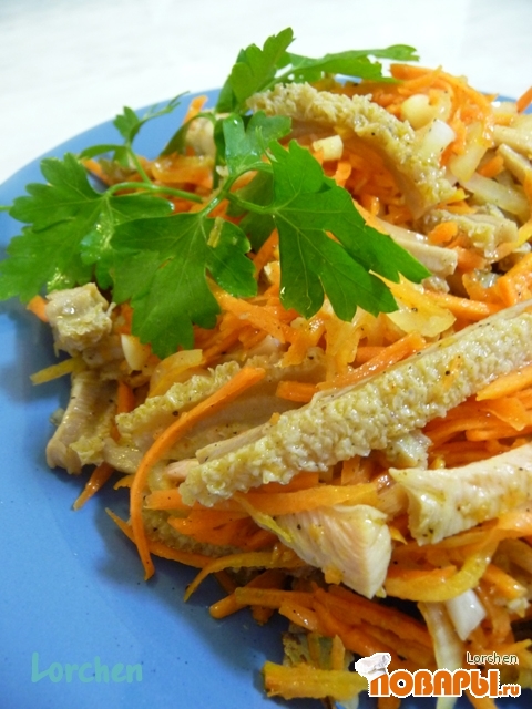 Растительное масло накалить и залить салат, хорошо перемешать. Дать настояться.